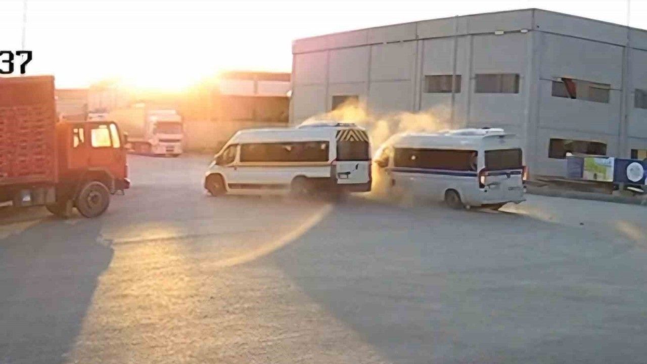 Öte yandan kaza anı başka bir fabrikanın güvenlik kamerası tarafından saniye saniye kaydedildi. Görüntüde iki minibüsün, kavşakta çarpışması ve araçların savrulması yer alıyor.