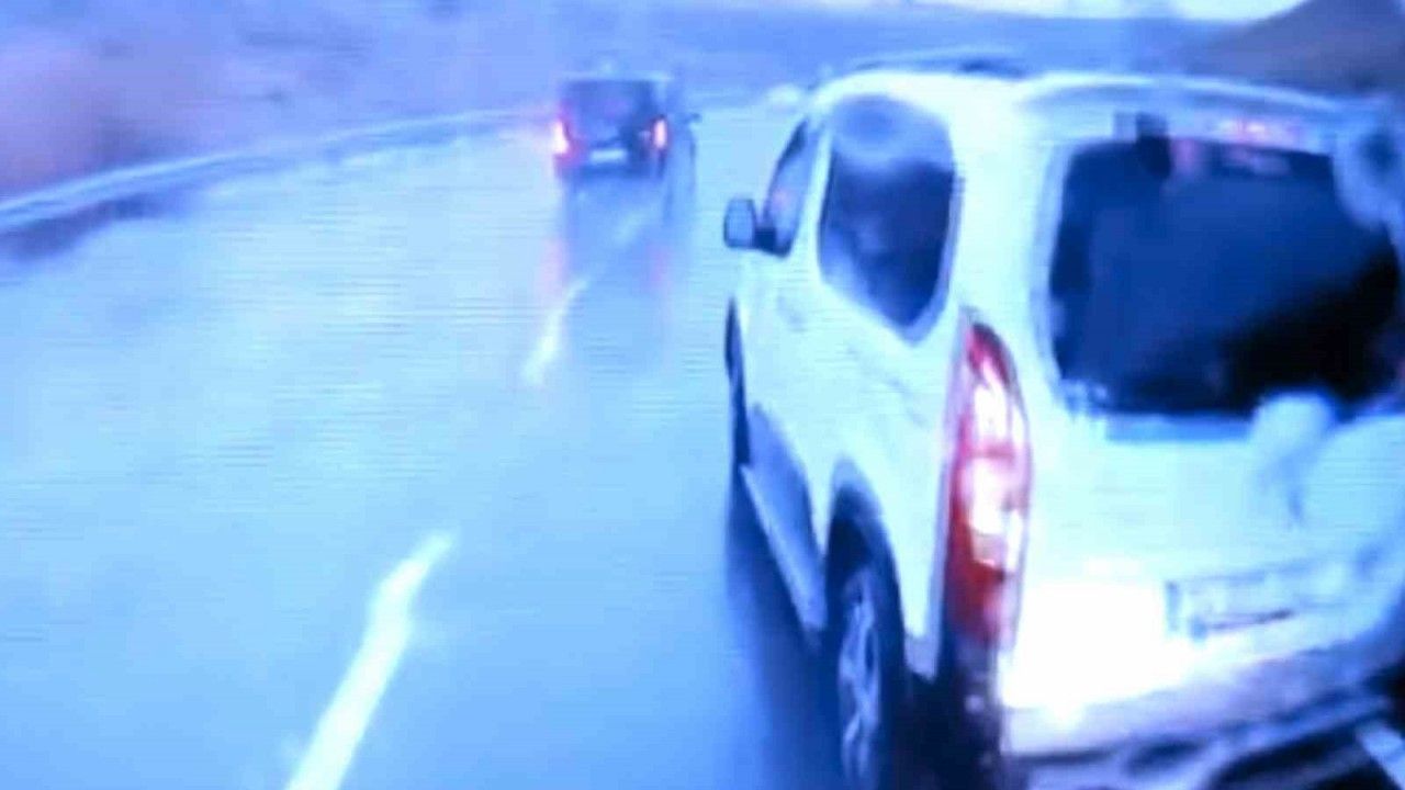 İstanbul Havalimanı’na giden otoyolların kenarlarında yolcu bekleyen bazı otomobil sürücüleri havalimanı içerisine girmeyerek otoyol kenarında duraksama yapıyor. Yapılan duraksamalar nedeniyle araç sürücülerinin yaptığı manevralar yürekleri ağza getiriyor. Hem kendi canlarını hem de diğer araç sürücülerinin canlarını hiçe sayan sorumsuz sürücülerin manevraları kazalara davetiye çıkartıyor. Bir servis aracının önüne aniden atlayan hafif ticari aracın az kalsın neden olacağı kaza, araç kamerası tarafından böyle görüntülendi. Görüntülerde otoyol üzerinde ilerleyen servis minibüsünün önüne aniden atlayan hafif ticari araç sürücüsünün yaptığı sorumsuz sürüşün az kalsın faciaya sebep olacağı anlar görüldü. Servis minibüsü şoförünün ani freni kazayı önledi.
