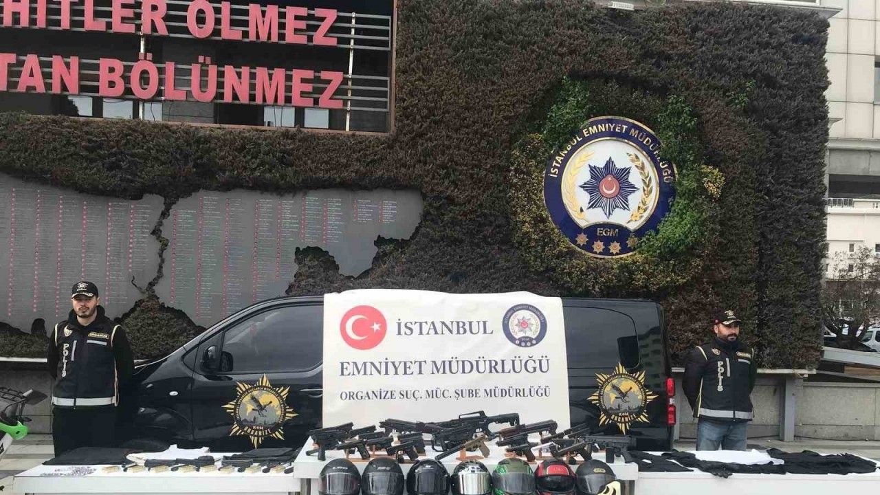 Baskın yapılan adreslerdeki aramalarda çok sayıda silah, bu silahlara ait mermiler ile suç işledikleri sırada kaçarken kullandıkları çalıntı araç, çalıntı motosiklet, motosiklet kaskları ve balistik çelik yelek ele geçirildi.