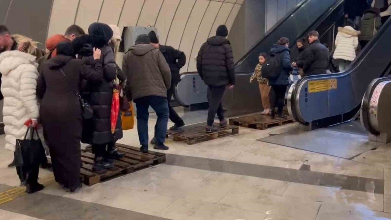 İstanbul Küçükçekmece’de bulunan Cennet Mahallesi metrobüs durağının alt geçidinin merdivenlerinden sular gelmeye başladı. Oluşan su birikintisi nedeniyle vatandaşlar suların içerisinden yürümek zorunda kalırken, olay yerine gelen İstanbul Büyükşehir Belediyesi (İBB) İSKİ ekiplerinin tahta paletle önlem aldığı görüldü.