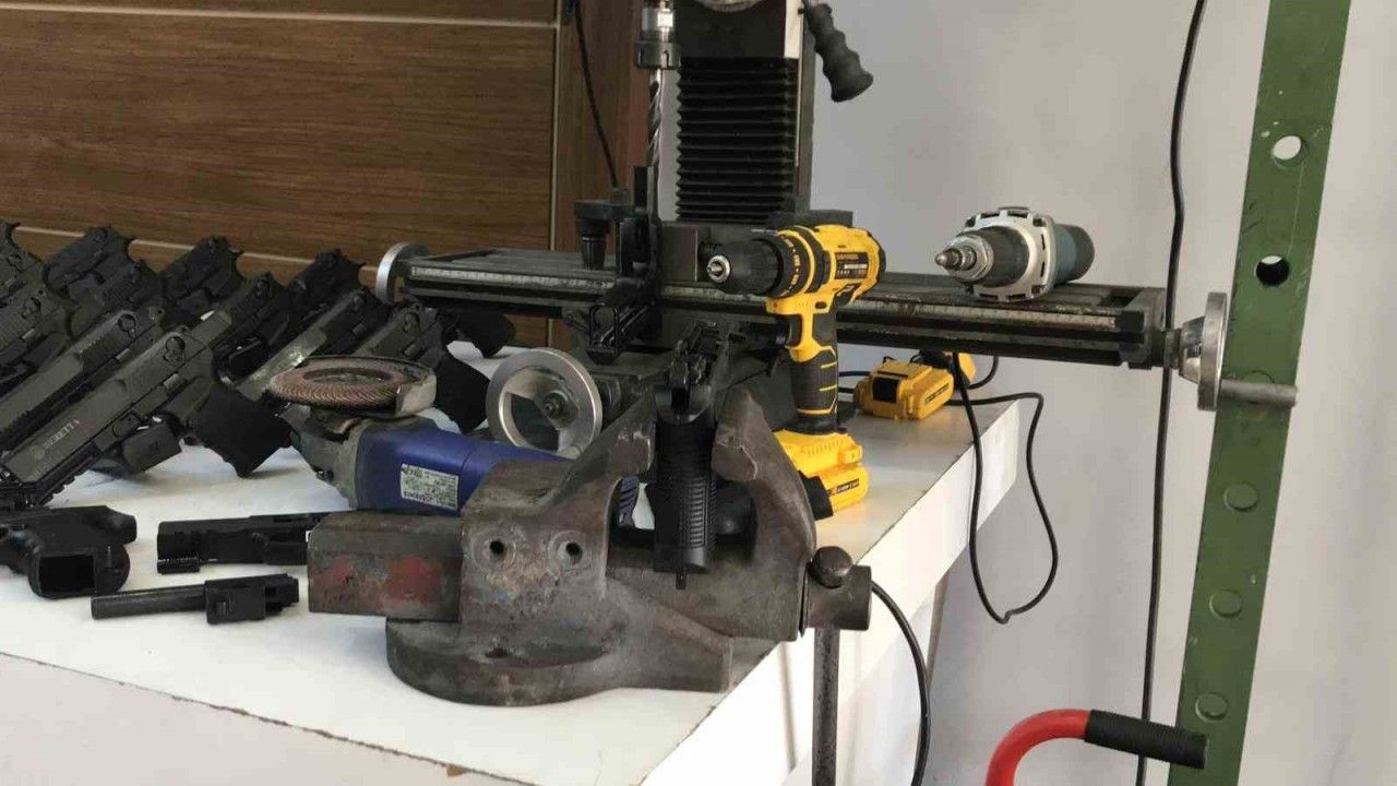 Şüphelilerin adreslerinde ve işyerlerinde yapılan aramalarda, yasa dışı bir silah atölyesi ortaya çıkarıldı, burada 4 uzun namlulu piyade tüfeği ve şarjörleri, 114 kuru sıkıdan ateşli silahı çevrilmiş tabanca ve şarjörü, 321 şarjör, 274 ucu açık namlu, 107 tabanca sürgüsü ve gövde takımı, ateşli silaha dönüştürülme aşamasında olan 80 kurusıkı tabanca ve şarjörleri, 159 merminin yanı sıra tetik tertibatı, yay ve pimden oluşan muhtelif sayıda tabanca parçası, illegal silah atölyesinde kullanılan sütun matkap, taşlama makinesi, masa tipi mengene, kompresör makinesi ve şarjlı matkap ele geçirildi.