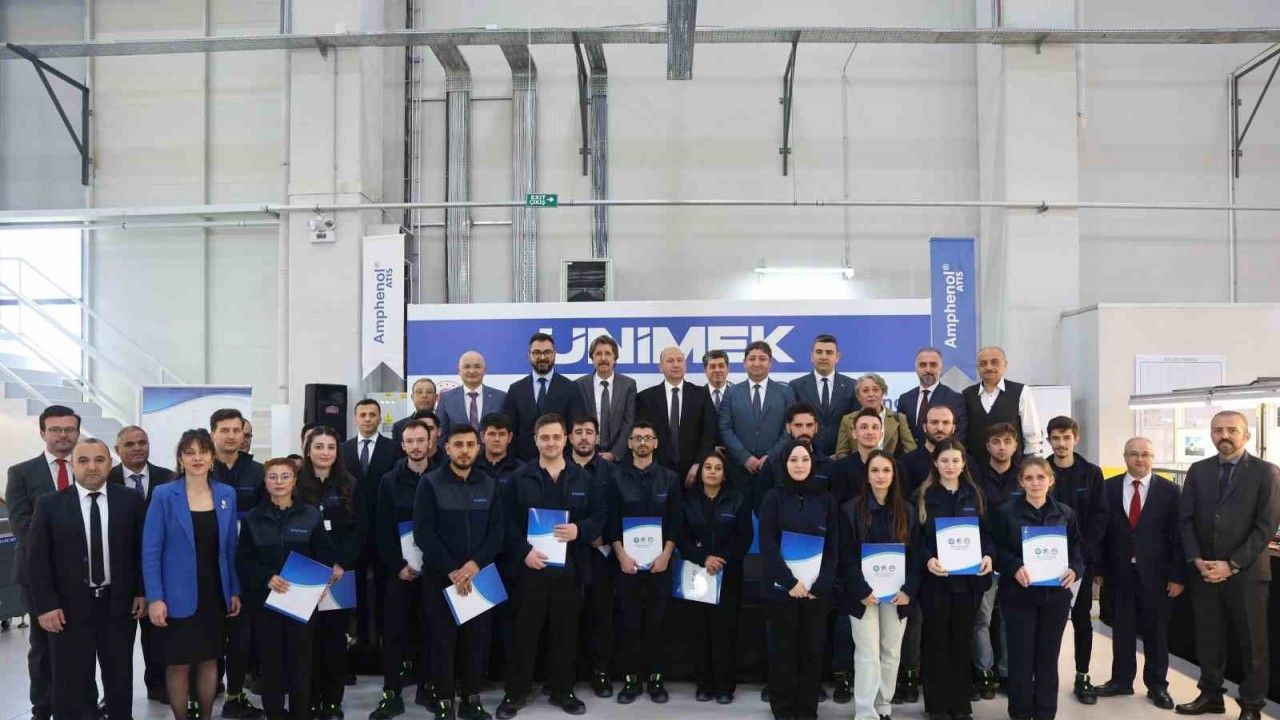 Çalışma ve Sosyal Güvenlik Bakanlığının önderliğinde; Türkiye İş Kurumu (İŞKUR), Bursa Uludağ Üniversitesi (BUÜ) ve Amphenol Türkiye Interconnect Solutions ortaklığıyla gerçekleştirilen Nitelikli İş Gücü Yetiştirme Programı’nın (ÜNİMEK) ilk dönemi düzenlenen belge töreniyle kapatıldı.