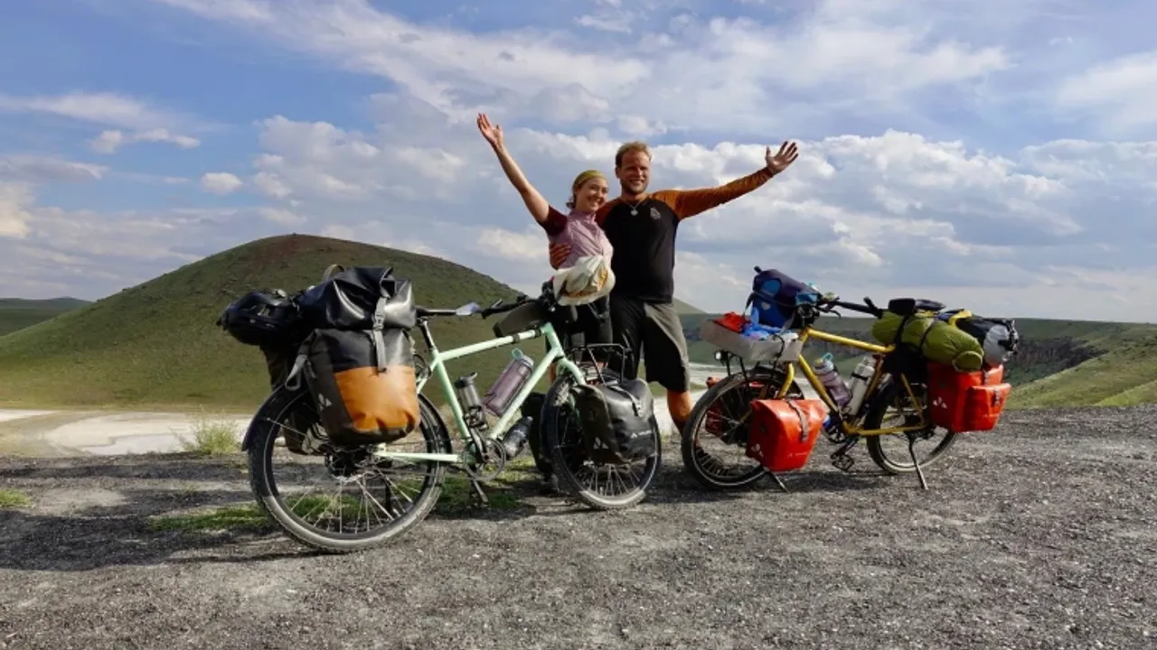 İsviçreli çift bisikletle Meke Gölü'ne ulaştı