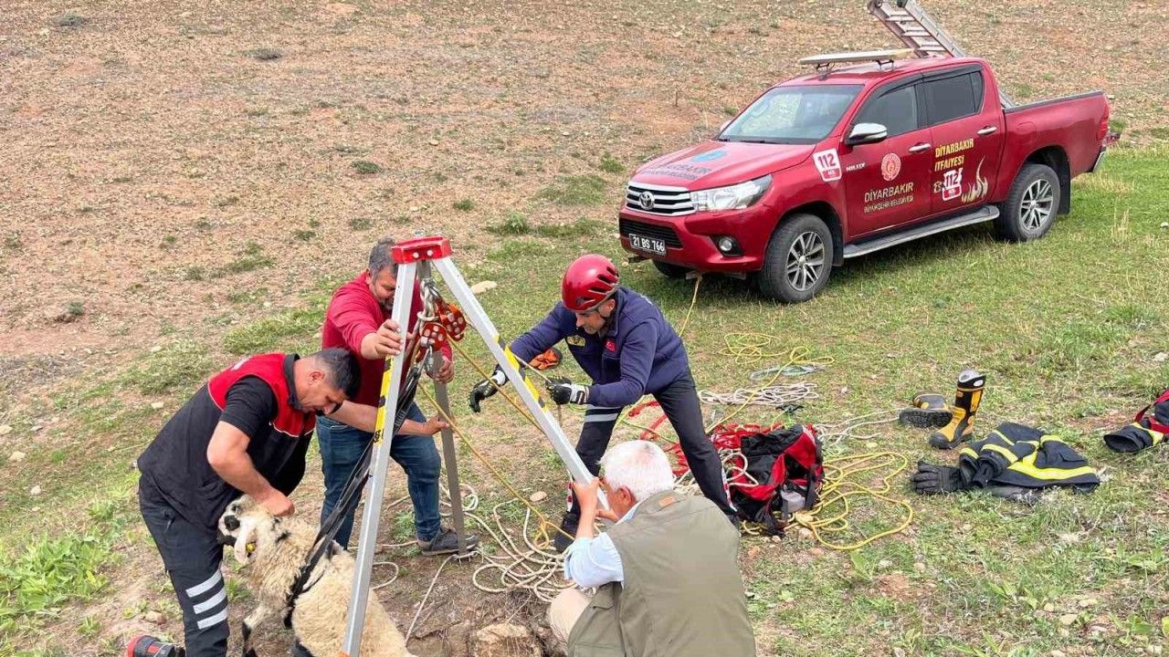 Diyarbakır’ın Bismil ilçesinde kuyuya düşen koyun, itfaiye ekiplerince kurtarıldı.