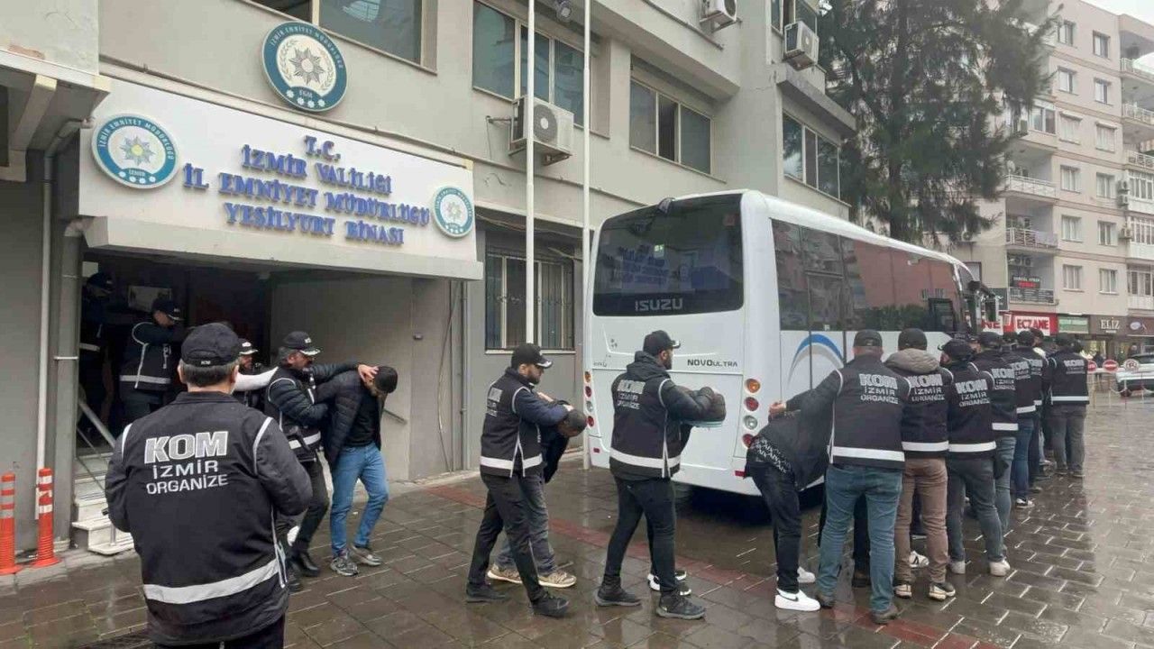 İzmir’de çok sayıda suça karıştıkları belirlenen şebekeye yönelik operasyonda gözaltına alınan 23 şüpheliden suç örgütü lideri B.A.’nın da aralarında bulunduğu 11 kişi tutuklandı.
