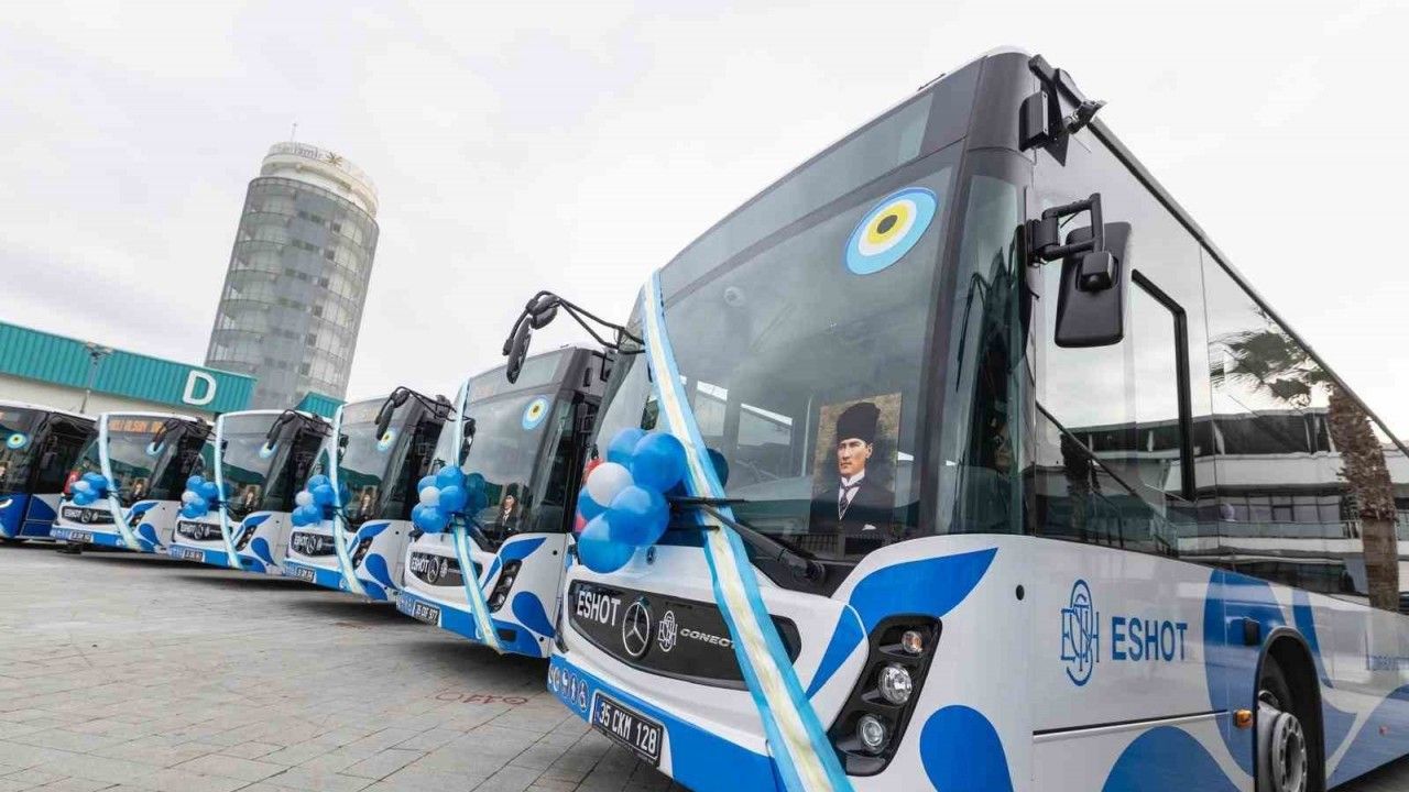 İzmir Büyükşehir Belediyesi, toplu ulaşım filosunu güçlendirmeye devam ediyor. Vatandaşların konforlu, güvenli ve rahat yolculuğu için çalışan İzmir Büyükşehir Belediyesi, ESHOT Genel Müdürlüğü bünyesine 41 yeni otobüs daha ekledi. Filoya kazandırılan yeni araçlar, İzmir Büyükşehir Belediyesi’nin kurumsal rengi olan aynı zamanda İzmir’in denizini ve gökyüzünü simgeleyen mavi renkte tasarlandı. Yeni otobüslere İzmirliler için şans ve güveni simgelemesi için "nazar boncuğu otobüsleri" adı verildi. Fuar İzmir Havuzlu Meydan’da gerçekleştirilen törene İzmir Büyükşehir Belediye Başkanı Dr. Cemil Tugay, İzmir Büyükşehir Belediyesi Başkan Vekili Dr. Zafer Levent Yıldır, ESHOT Genel Müdürü Övünç Özgen, ilçe belediye başkanları, İzmir Büyükşehir Belediyesi ve ESHOT Genel Müdürlüğü bürokratları, siyasi parti temsilcileri, muhtarlar ve meclis üyeleri katıldı. Isuzu Satış Direktörü Yusuf Teoman ve Satış Müdürü Murat Küçük ile Mercedes-Benz Türk AŞ Otobüs Kamu Satış Müdürü Selim Eyüboğlu Başkan Tugay’a plaket takdim etti. ESHOT Genel Müdürü Övünç Özgen de sembolik olarak nazar boncuğu şeklinde tasarlanan otobüs anahtarını Başkan Dr. Cemil Tugay’a teslim etti.