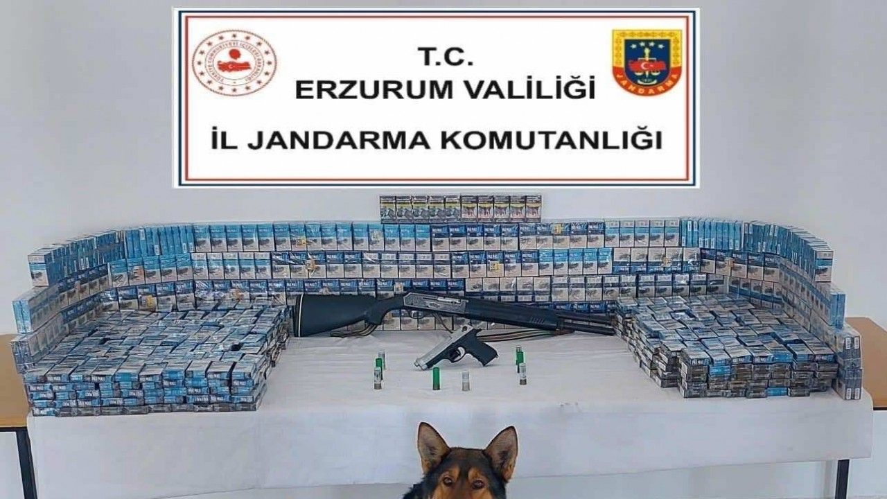 Erzurum İl Jandarma Komutanlığı Kaçakçılık ve Organize Suçlarla Mücadele Şube Müdürlüğü ve Horasan İlçe Jandarma Komutanlığınca kaçakçılıkla mücadele kapsamında Horasan ilçesinde tütün köpeği Zahir’in de katkılarıyla yürütülen çalışmalar neticesinde; bin 754 paket kaçak sigara, 2 adet ruhsatsız tabanca, 2 adet şarjör, 75 adet 9 mm tabanca fişeği ve 2 adet ruhsatsız av tüfeği ele geçirildi. Olayla ilgili 2 şahıs hakkında 5607 sayılı Kaçakçılıkla Mücadele ve 6136 sayılı Ateşli Silahlar ve Bıçaklar ile Diğer Aletler Hakkında Kanunu’na muhalefet suçundan yasal işlem yapıldı.