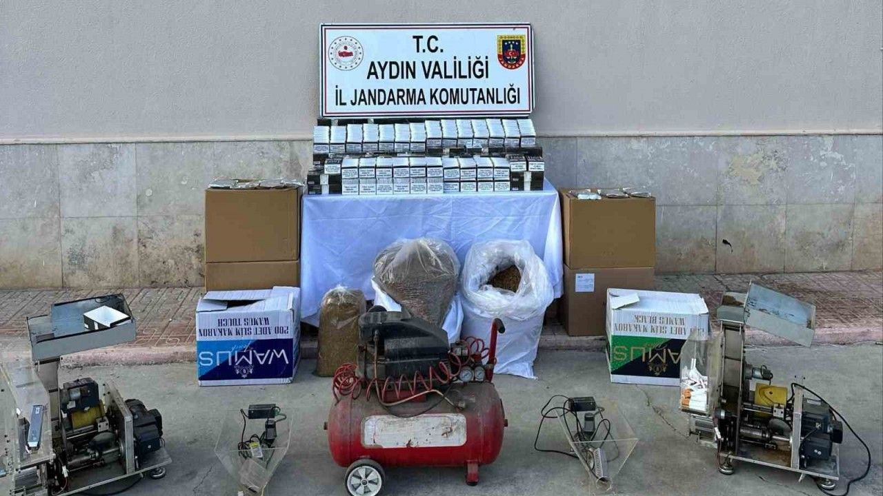 Aydın İl Jandarma Komutanlığı KOM Şube Müdürlüğü, Nazilli ve Kuyucak İlçe Jandarma Komutanlıkları tarafından sigara kaçakçılığına yönelik koordineli çalışma gerçekleştirildi. Edinilen bilgiye göre ekipler, Nazilli ilçesinde A.H. ve M.T. isimli şahıslara ait iki mahallede bulunan işyerlerinde sigara sarımı yaparak piyasaya sürdükleri bilgisine ulaştı. Yapılan aramalarda 187 bin adet içi tütün doldurulmuş makaron, 110 bin adet sahte bandrollü veya bandrolsüz boş makaron, 10 kilo nargile tütünü, 40 kilo kıyılmış açık tütün, 2 adet havalı sigara sarma makinesi, 2 adet tütün kesme makinesi, 1 adet kompresör makinası ele geçirildi. Yakalanarak gözaltına alınan 2 şüpheli hakkında başlatılan adli ve idari süreç devam ediyor.
