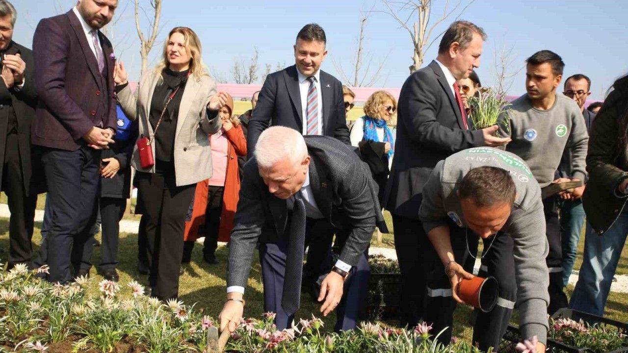 Daha sonra beraberindekilerle çiçek dikimi yapan Başkan Bozbey, günün anısına kadınlara çuha ve gazania çiçeği hediye etti.