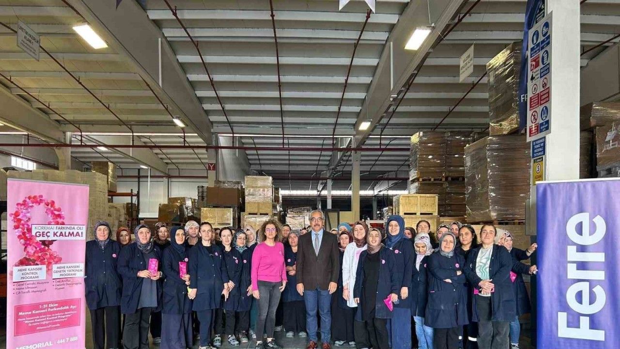 Meme Kanseri Farkındalık Ayı nedeniyle düzenlenen toplantılara çok sayıda kadın çalışan katıldı. Organize Sanayi Bölgesi’ndeki fabrikada düzenlenen toplantıda konuşan Genel Cerrahi Bölümü’nden Prof. Dr. Alper Akcan, meme kanserinin kadınlarda en sık görülen kanser türü olduğunu söyledi. Her 7-8 kadından 1 tanesinin yaşamı boyunca meme kanseri ile yüz yüze geldiğini belirten Prof. Dr. Akcan, "Dünyada her yıl 2 milyon kadın meme kanserine yakalanıyor. Ülkemizde her yıl 25 bin kadın meme kanserinden etkileniyor. Bu kadın hastaların 6’sından 1 tanesi 40 yaşının altında" diye konuştu.