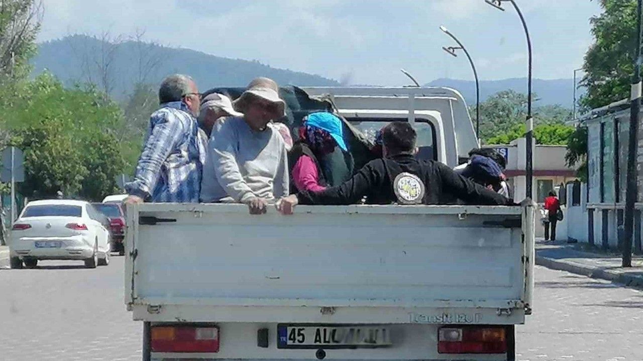 Manisa’nın Turgutlu ilçesinde açık kasa kamyonetin kasasında, emniyetsiz bir şekilde taşınan çok sayıda kişi yolda giden başka bir vatandaş tarafından görüntülendi. Görüntülerde, aralarında kadın ve erkeklerin bulunduğu yaklaşık 10 kişinin kamyonet kasasında ayakta veya oturarak yolculuk ettiği görülüyor. Güneşten korunmak için şapkalar ve örtüler kullanan tarım işçilerin bu şekilde taşınması, hem yolcuların hem de diğer sürücülerin hayatını tehlikeye atarken vatandaşlar özellikle tarım sezonunda denetimlerin daha da artırılmasını istedi.