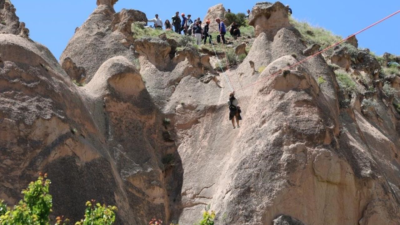 Nevşehir’de peri bacalarının üzerine güvenli iniş yapan sıcak hava balonunun sepetinden inerek bölgede mahsur kalan turistler ekiplerin çalışması sonucu tahliye edildi.