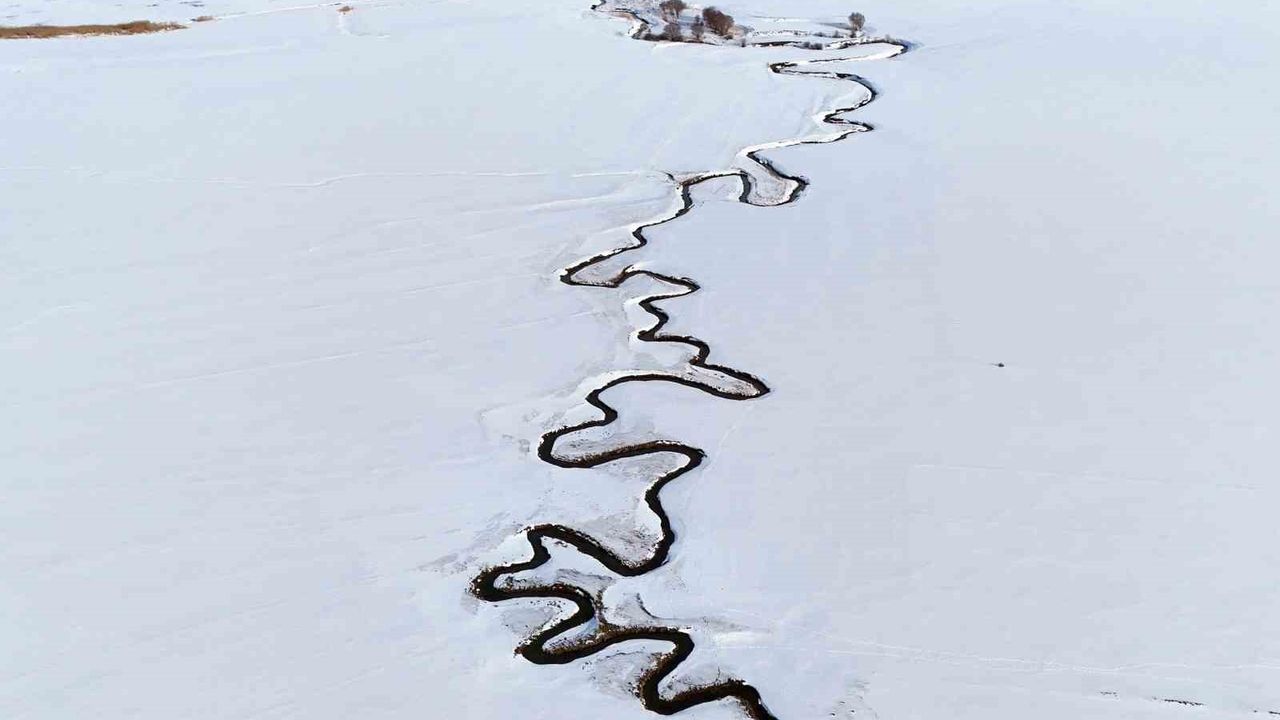 Bitlis'in Ahlat ilçesine bağlı Nazik köyünde bulunan menderesler, kar yağışıyla birlikte güzel manzaralar oluşturuyor. Nazik köyünden başlayıp yüzeyi tamamen buzla kaplanan 40 kilometrekarelik alana sahip Nazik Gölü'ne kadar kıvrılıp uzayarak giden menderesler, kış aylarında da muhteşem manzaralar oluşturuyor. Bembeyaz kar örtüsünün arasından süzülen menderes kıvrımlarının oluşturduğu kış güzelliği havadan görüntülendi.
