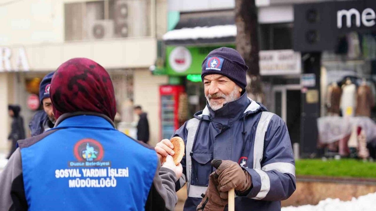Düzce Belediyesi Sosyal Yardım İşleri Müdürlüğü de sahadaki karla mücadele ekiplerini unutmadı. Ekiplerin görev noktalarına yapılan ziyaret sırasında, karla mücadeleye devam eden personele sıcak çay ve poğaça ikram edildi. Bu iç ısıtan jest, zorlu çalışma şartlarında görev yapan çalışanlara moral kaynağı oldu.