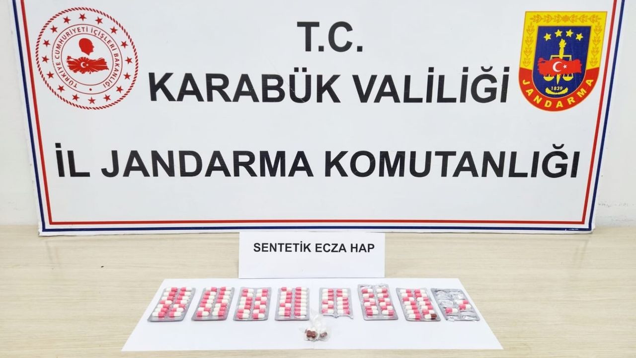 Karabük’te jandarma ekipleri tarafından düzenlenen operasyonda 102 adet sentetik ecza hap ele geçirildi.