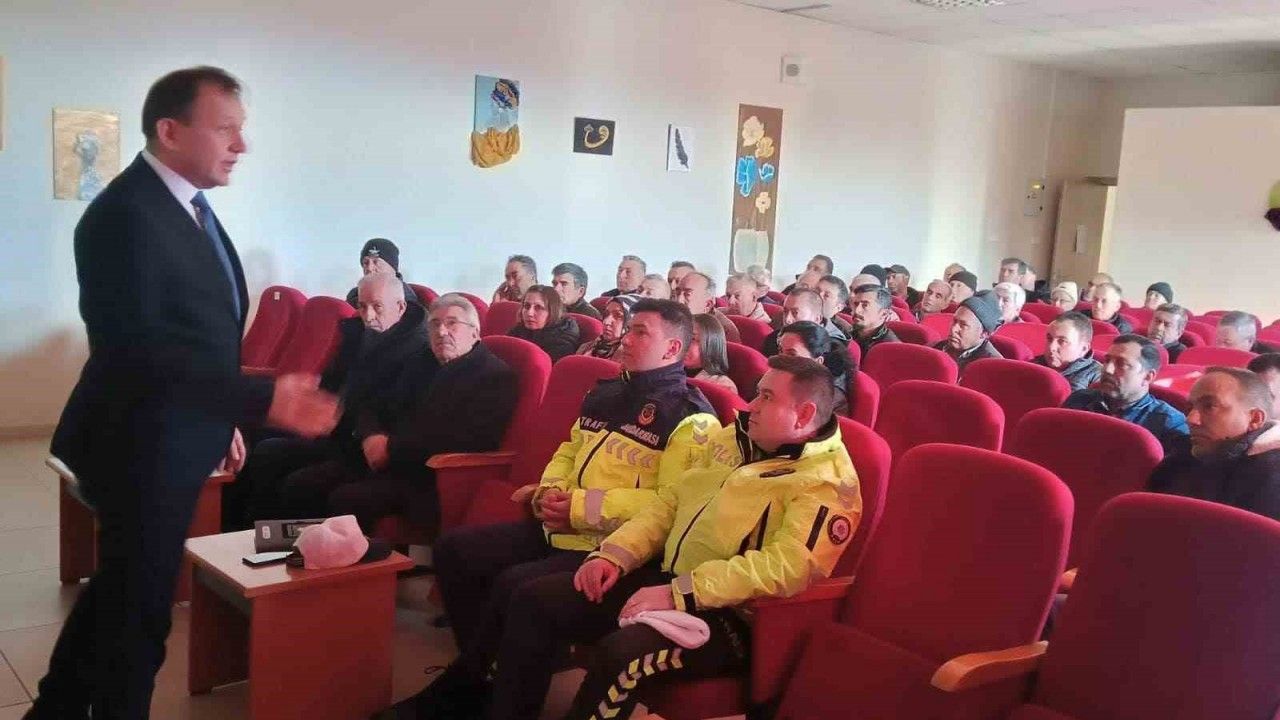 Okul servis aracı sürücüleri ve rehber personeline yönelik olarak düzenlenen toplantıya katılan yetkililer, güvenli ve düzenli okul taşıma hizmetleri için gerekli önlemleri ve trafik kurallarını anlattı. Okul servis araçlarının güvenliği, öğrenci taşımacılığı sırasında dikkat edilmesi gereken noktalar ve trafikle ilgili yapılması gereken düzenlemeler ele alındı.