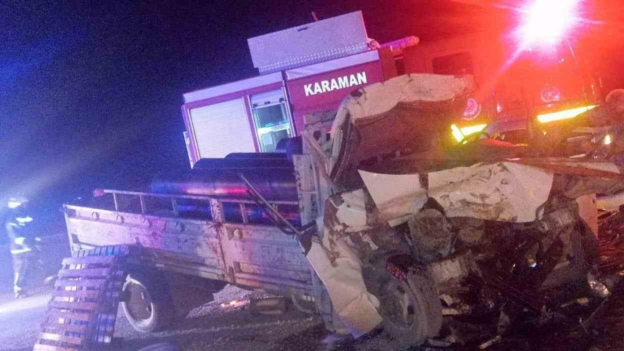 Kaza, gece saat 01.15 sıralarında Karaman-Konya Karayolu’nun 35. kilometresinde meydana geldi. Edinilen bilgiye göre, Ali Ş. (35) idaresindeki 70 AAB 456 plakalı kamyonet, sürücüsünün direksiyon hakimiyetini kaybetmesi sonucu kontrolden çıkarak park halindeki 42 PF 043 kamyona çarptı. Kazada kamyonet hurdaya dönerken sürücü direksiyon mahallinde sıkıştı. İhbar üzerine olay yerine sağlık, itfaiye, polis ve jandarma ekipleri sevk edildi. İtfaiye ekiplerinin uzun uğraşları sonucu kamyonet sürücüsü sıkıştığı yerden kurtarılarak ambulansla Karaman Eğitim ve Araştırma Hastanesi’ne kaldırıldı. Burada tedavi altına alınan kamyonet sürücüsünün sağlık durumunun ciddiyetini koruduğu öğrenildi. Kazayla ilgili tahkikat başlatıldı.