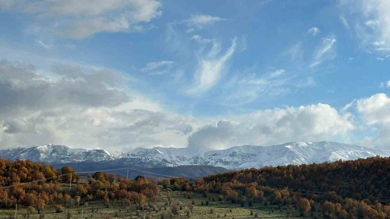 Son günlerde bölgede etkili olan yağışlı ve kapalı hava sabah saatlerinde yerini güneşe bırakınca, dağların üzerindeki kar örtüsü daha net şekilde görünmeye başladı. Mevsimin geçişini en belirgin şekilde hissettiren manzara, beyaz ve sonbahar renklerinin aynı karede buluşmasıyla dikkat çekti. Vatandaşlar oluşan bu manzarayı araçlarından ve cep telefonlarıyla görüntüleyerek kayıt altına aldı. Doğanın iki mevsimi aynı anda yaşatan bu görüntüler görsel şölen oluşturdu.