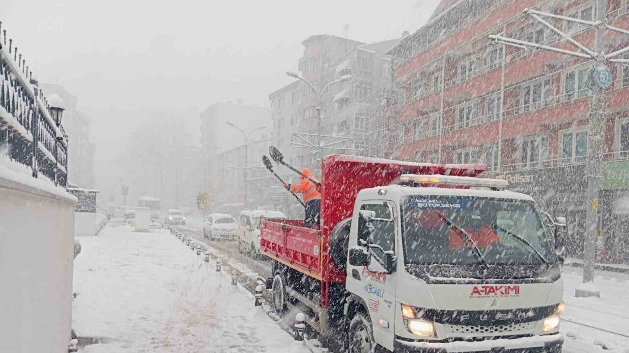 Kocaeli’de kar yağışı sebebiyle ekipler, 12 saat boyunca direksiyon başında görev yaparak yolları açıyor.