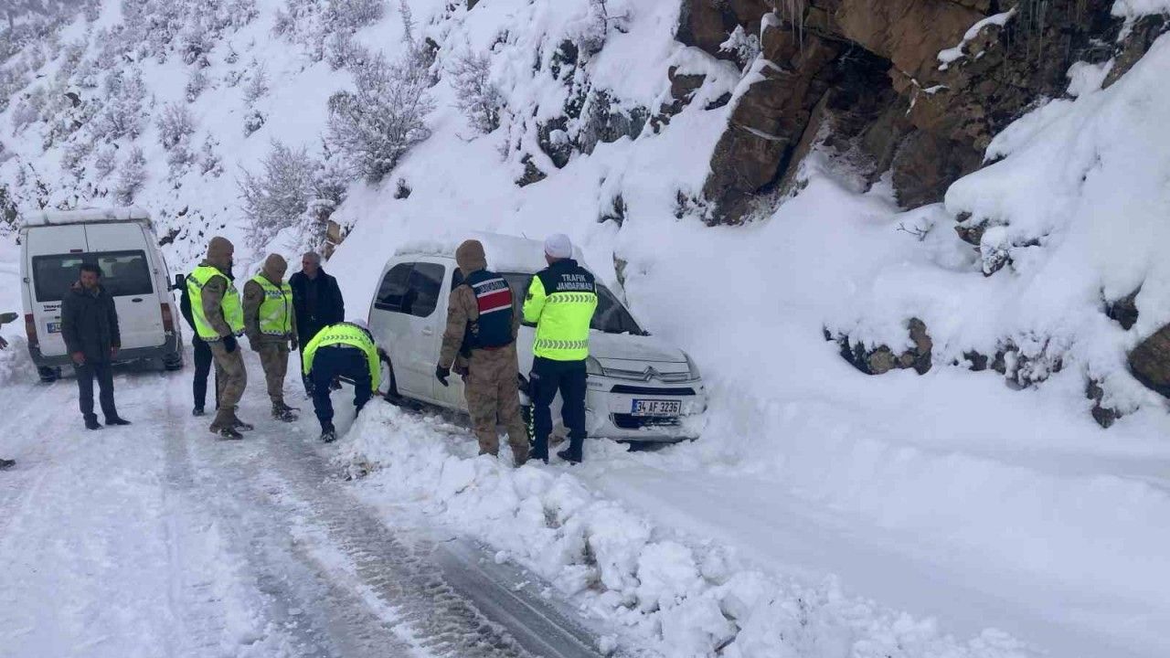 Bitlis’in Tatvan ilçesinde kar nedeniyle araçları yoldan çıkarak mahsur kalan vatandaşların imdadına Mehmetçik yetişti.