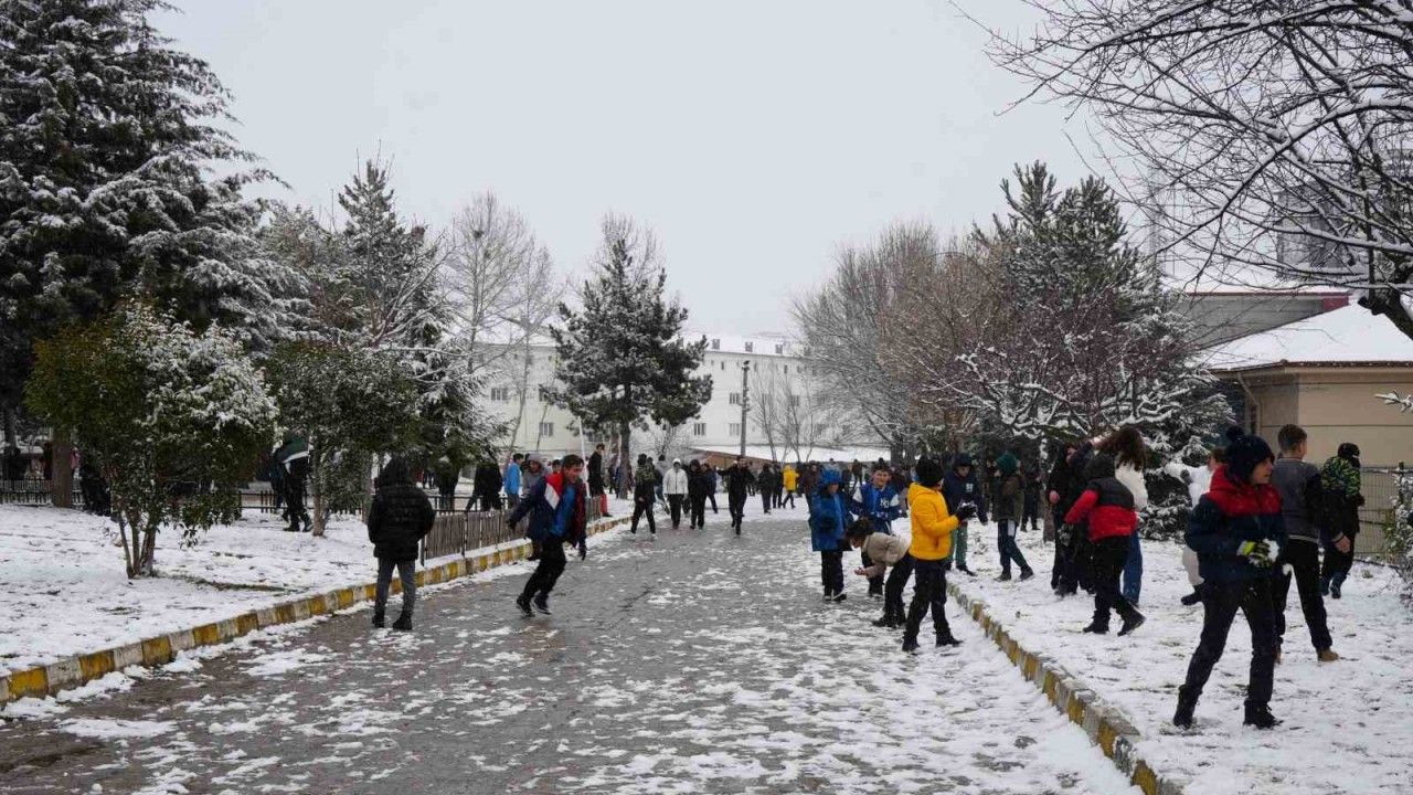Vali Aydın Arslan Ortaokul öğrencisi Yiğit Özçaylım ise, "Kar yağdı, çok mutluyuz. Öğretmenlerimiz de bizleri düşünerek dışarıya çıkardı. Biz de arkadaşlarımızla birlikte kar topu oynuyoruz ve eğleniyoruz" diye konuştu.