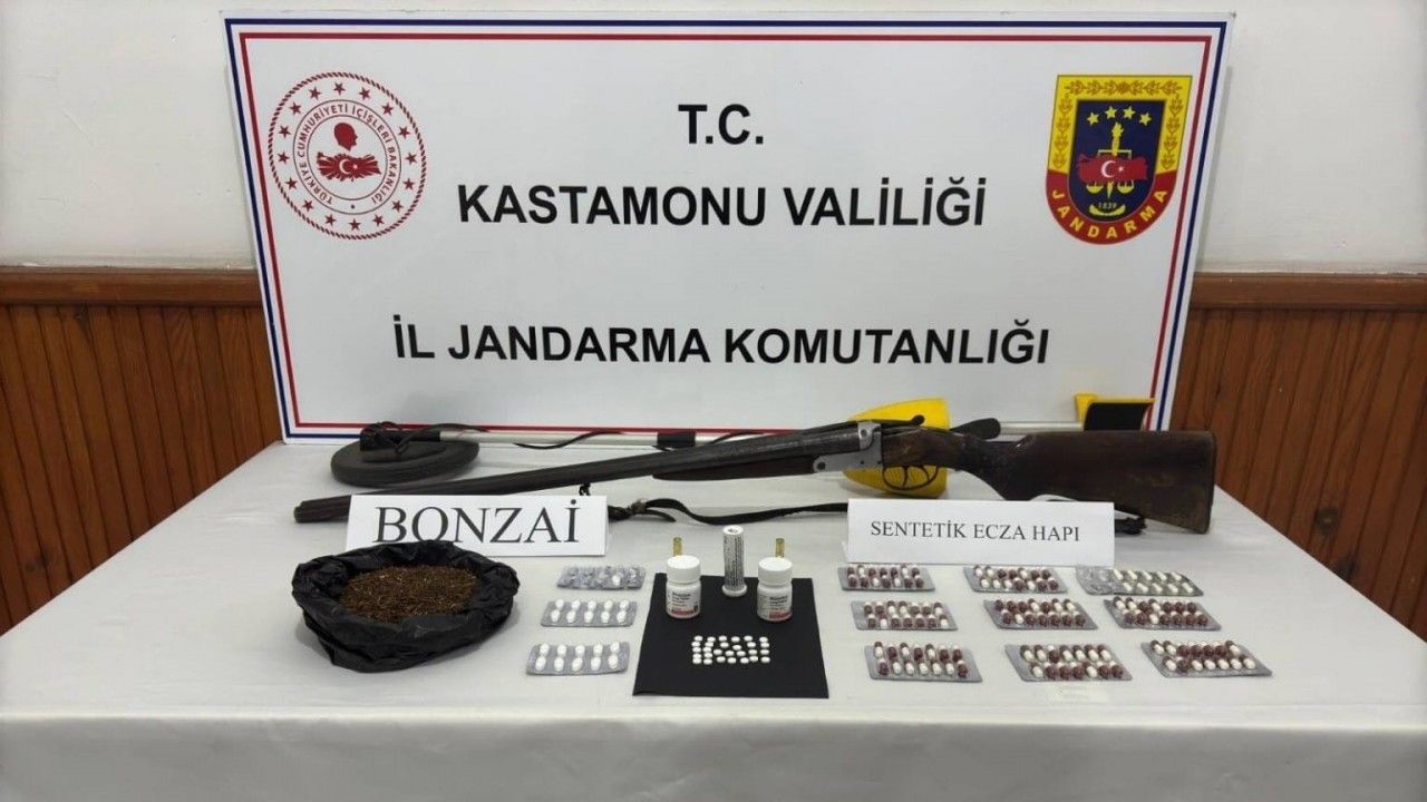 Edinilen bilgilere göre, İl Jandarma Komutanlığı ekipleri, uyuşturucu madde imalatı ve ticaretine yönelik çalışmalarını sürdürüyor. Bu kapsamda, Araç ilçesinde M.C. isimli şahsın aracında ve ikametinde yapılan aramada sentetik ecza hapı, kannabinoid, metamfetamin ve bir adet ruhsatsız av tüfeği ele geçirildi. Gözaltına alınan M.C., jandarma ekiplerince sevk edildiği adliyede çıkarıldığı mahkemece tutuklandı.