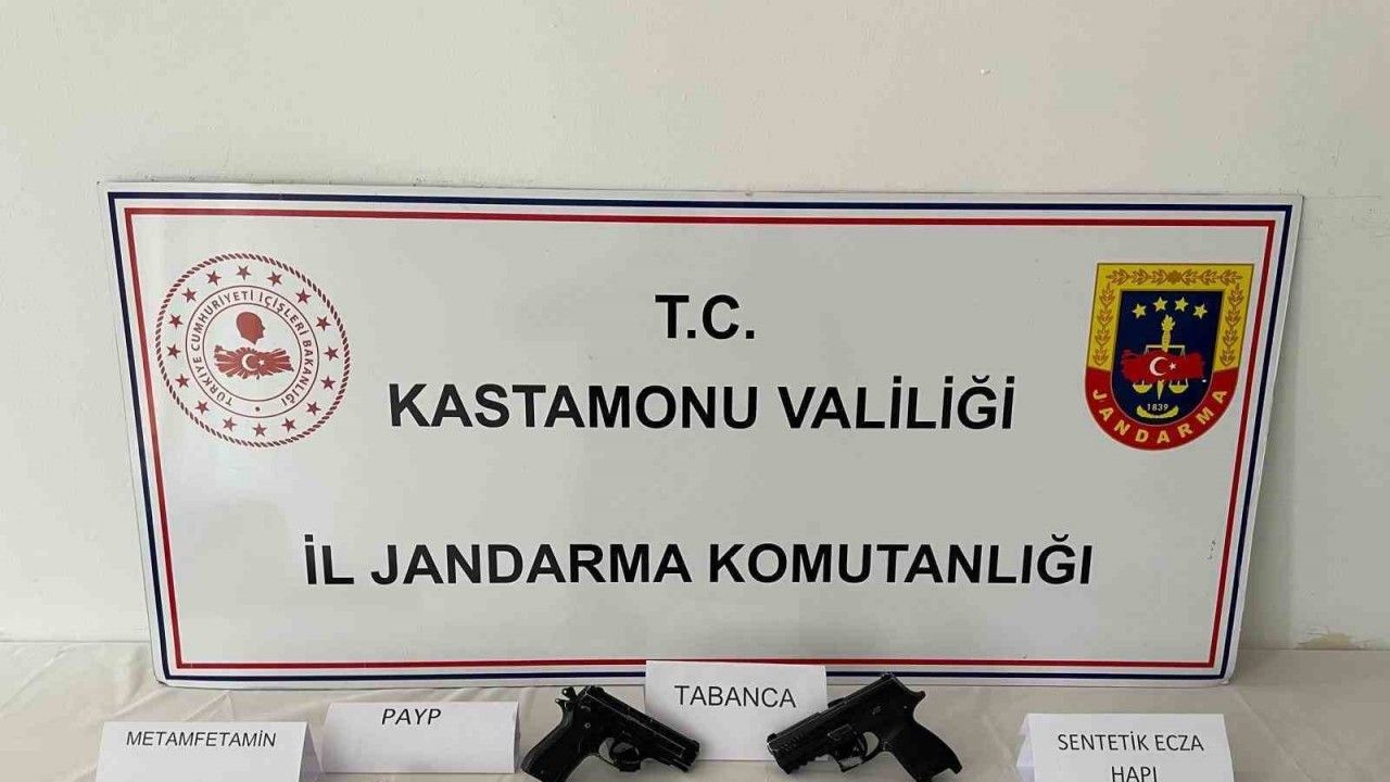 Edinilen bilgiye göre, Kastamonu İl Jandarma Komutanlığı ekiplerince, uyuşturucu madde imal ve ticareti yapan şahıslara yönelik yürütülen çalışmalar kapsamında merkez ilçede C.G. ve R.A. isimli şahısların üst ve eşyalarında arama gerçekleştirildi. Yapılan arama sonucunda metamfetamin, sentetik ecza hapı, 2 adet ruhsatsız tabanca ve suçtan elde edildiği değerlendirilen 18 bin TL nakit para ele geçirildi.