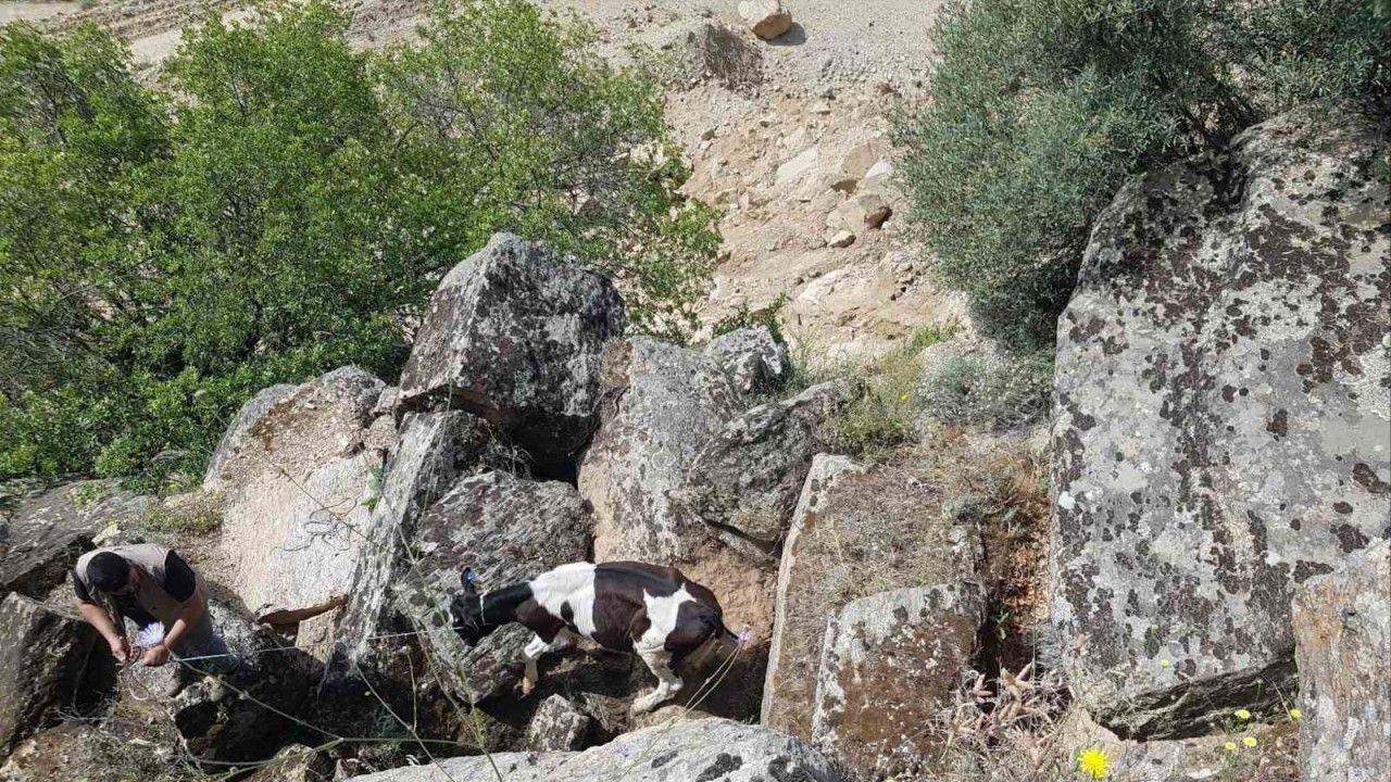 Olay, Koçarlı ilçesi Kızılkaya Mahallesi’nde meydana geldi. Edinilen bilgiye göre 2 adet büyükbaş hayvanının kaybolduğunu fark eden M.A.A. isimli vatandaş, 112 Acil Çağrı Merkezi’ni arayarak 2 adet büyükbaş hayvanın kaybolduğunu ihbar etti. İhbar üzerine bölgeye Koçarlı İlçe Jandarma Komutanlığı ekipleri sevk edildi. Bölgeye gelen ekipler, yapılan araştırma ve dron ile arama sonucunda büyükbaş hayvanları yaklaşık 3-4 metre yükseklikten kayalık uçurum alana düştüğünü tespit etti. Kısa sürede bulunan inekler, mahsur kaldıkları bölgeden kurtarılarak sahibine teslim edildi.