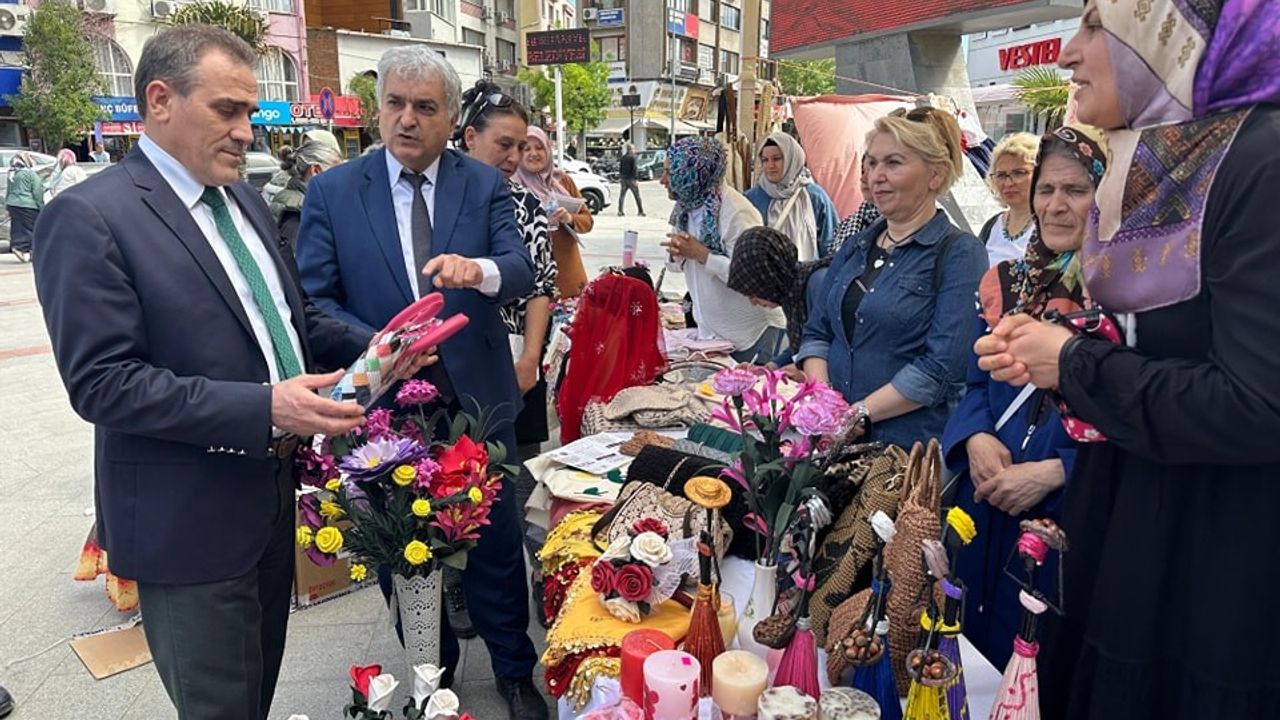 Cumhuriyet meydanında düzenlenen stantlarda sergilenen ürünler ilgi gördü. Kaymakam İlyas Memiş, el işi örme çantalar, özel dikim kıyafetler, çeyizlik ürünler, özel yapım mumlar gibi birçok alanda sergilenen çalışmaları inceledi. Kaymakamımız İlyas Memiş, Sosyal Yardımlaşma Vakfı Müdürü Selçuk Çiftçi ve kursiyerlerden bilgi aldı. Ziyaret programında Kaymakam İlyas Memiş’e Sosyal Yardımlaşma Vakfı mütevelli heyet üyeleri eşlik etti.