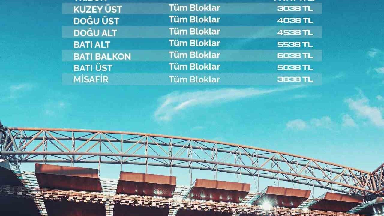 Batı Üst tribün tüm bloklar: 5 bin 38 TL
