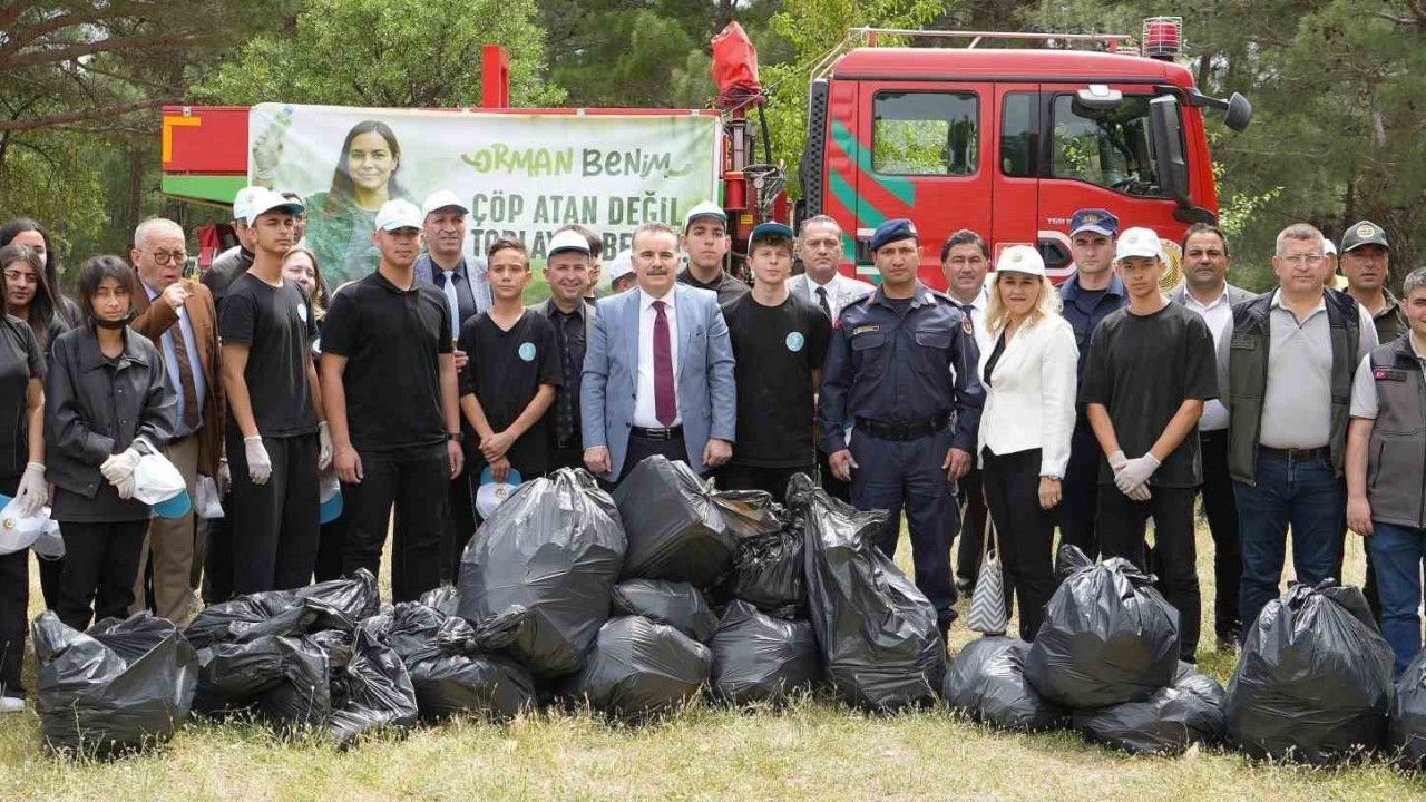 Balıkesir’in Edremit ilçesinde Kazdağları’nda "Orman Benim" etkinliği kapsamında ormanlık alan çöplerden arındırıldı. Etkinlikte yarım saat içinde öğrenciler ve protokol üyeleri yarım ton atık ve çöp topladı.