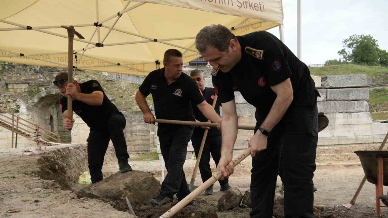 Düzce Belediyesi birimlerinin hafta sonları dönüşümlü olarak katıldığı kazı çalışmalarına bu kez İtfaiye Müdürlüğü destek verdi. İtfaiyesi personelleri, bölgenin tarihi mirasını koruma ve gün yüzüne çıkarma çalışmalarına katkı sunmak amacıyla Konuralp Antik Kenti kazılarına katıldı. Bölgede devam eden kazı çalışmaları ile birlikte restorasyon çalışmaları da başlayacağı bildirildi.