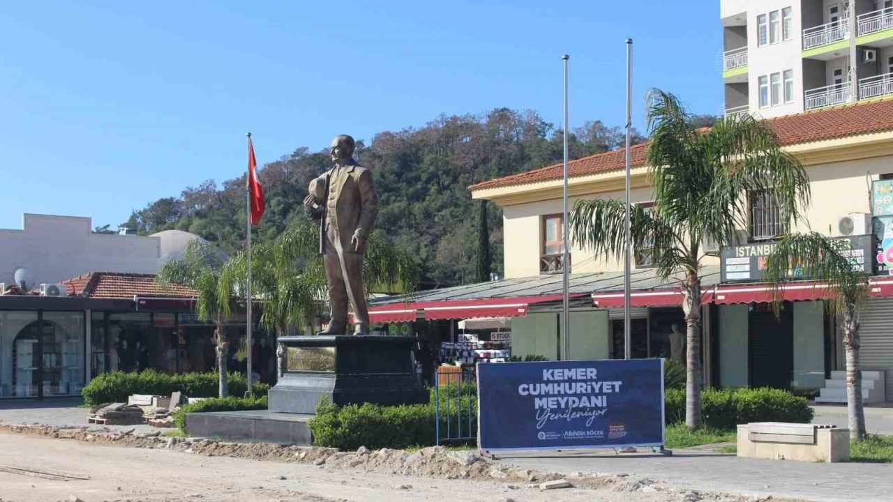 Turizmin göz bebeği Kemer ilçesindeki Cumhuriyet Meydanı’nı baştan sona düzenleyerek büyüten Antalya Büyükşehir Belediyesi, meydanı turizm sezona hazırlıyor.
