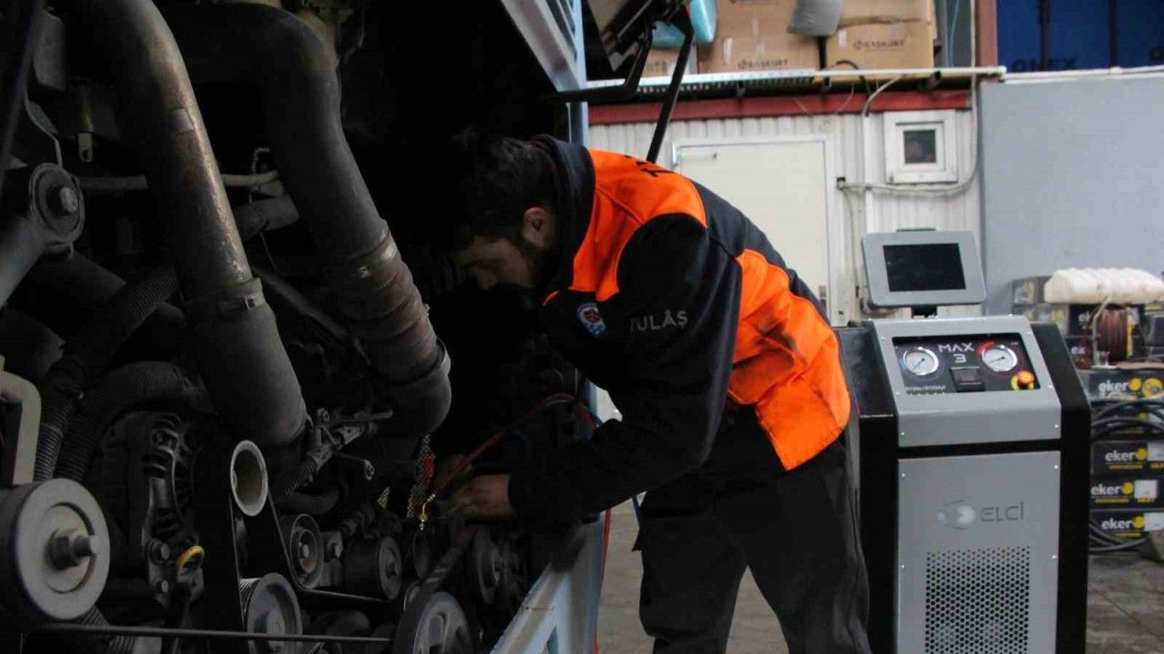 Anlık arızayı giderebilecek bir yapıyı kurguladıklarını kaydeden Öztel, “Vatandaşımız için kıymetli olan yazın sıcaklarda klimanın soğutması işte kışın da kaloriferlerin ısıtması. Bu noktada artık ciddi bir yatırım yaparak klima bakım onarım ünitesini kurduk. Artık arabalarımızın klimalarında kendimiz tamir eden, kendimiz arızasını onaran bir yapıyız. Tabii bu klima anlık arıza verebilen bir şey. Bugün bir seferinde klima arızası yaşayan bir araba buraya geldiği zaman onun ustası da bizde var. Makineleri de bizde var. Anlık arızasını giderebilecek bir yapıyı kurguladık. Bugün TULAŞ’ın Bakım Onarım Müdürlüğü dışarıdaki herhangi bir araba servisinde ne varsa ondan daha fazla yeteneğe sahip. Ondan daha fazla envantere, ustaya, daha fazla usta çeşitliliğine, daha fazla birime sahip bir alan. Bugün kaporta boyamızı da kendimiz burada yapıyoruz artık. Bakalit tamirlerimizi burada yapıyoruz. Lastik bakım onarımlarımızı burada yapıyoruz. Araçlar içerisindeki koltuk kılıflarının tamirini onarımına kadar burada yapılıyor” diye konuştu.