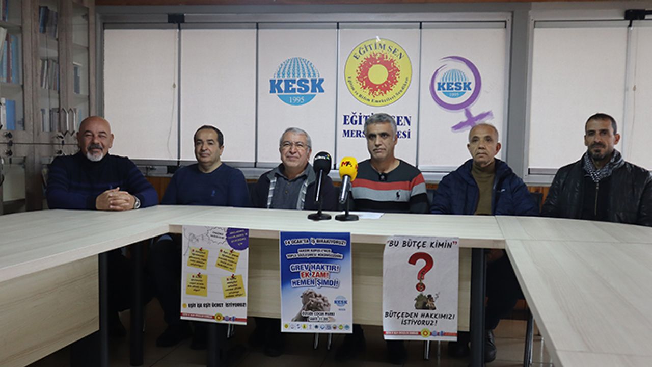 Kamu Emekçileri Sendikaları Konfederasyonu (KESK) Mersin Şubeler Platformu, Eğitim ve Bilim Emekçileri Sendikası (Eğitim Sen) Terası’nda bir araya gelerek, iş bırakacaklarını duyurdu. KESK, iş bırakma eylemine gerekçe olarak ise sefalet dayatması ve güvencesiz çalıştırma olarak gösterdi. KESK Mersin Şubeler Platformu adına açıklamayı KESK Mersin Şubeler Platformu Dönem Sözcüsü Doğan Yarlıgaş yaptı.