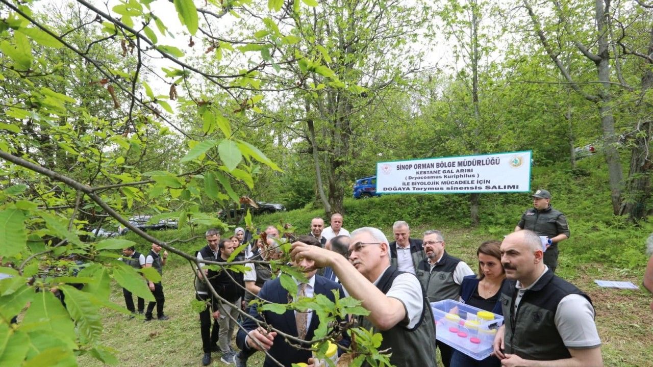 Biyolojik mücadele kapsamında Sinop’un Erfelek ilçesine bağlı Kirazlık köyünde de çalışma gerçekleştirildi. Sinop Vali Yardımcısı Ali Osman Bulat ve Orman Genel Müdürü Bekir Karacabey’in katılımıyla, gal arısıyla mücadele için avcı böcek salınımı yapıldı.
