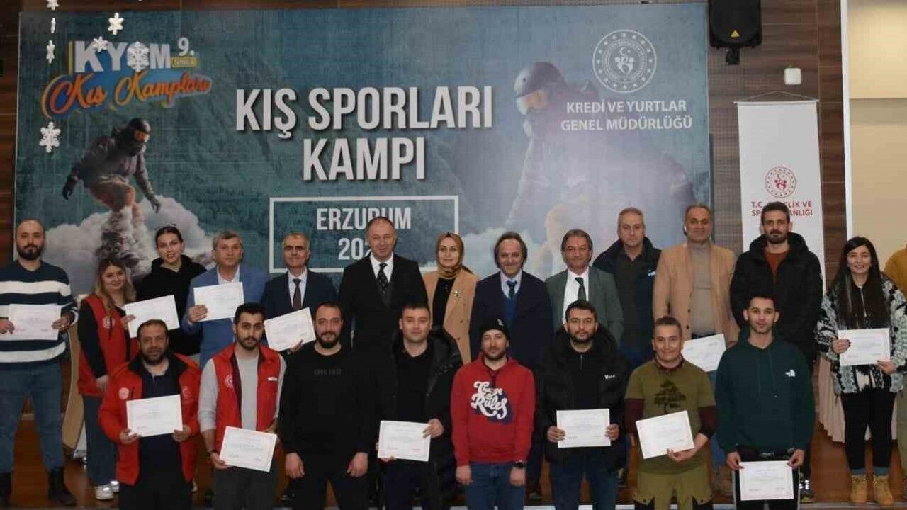 Konuşmaların ardından Erzurum GSİM Hattat Hasan Çelebi Kız Yurdu’nda bir hafta süren KYGM 9. Tematik Kış Kampın kış ve buz sporlarında öğrencilere kayak, curling, buz pateni öğreten antrenörlerin yanı sıra kar voleybolu ve kızak ile gençlik faaliyetlerinde görev yan hizmet ve şube müdürleri ile Kış Kampı Koordinatörlük ekibine İl Müdürü Levent Çakmur tarafından teşekkür belgesi verildi.