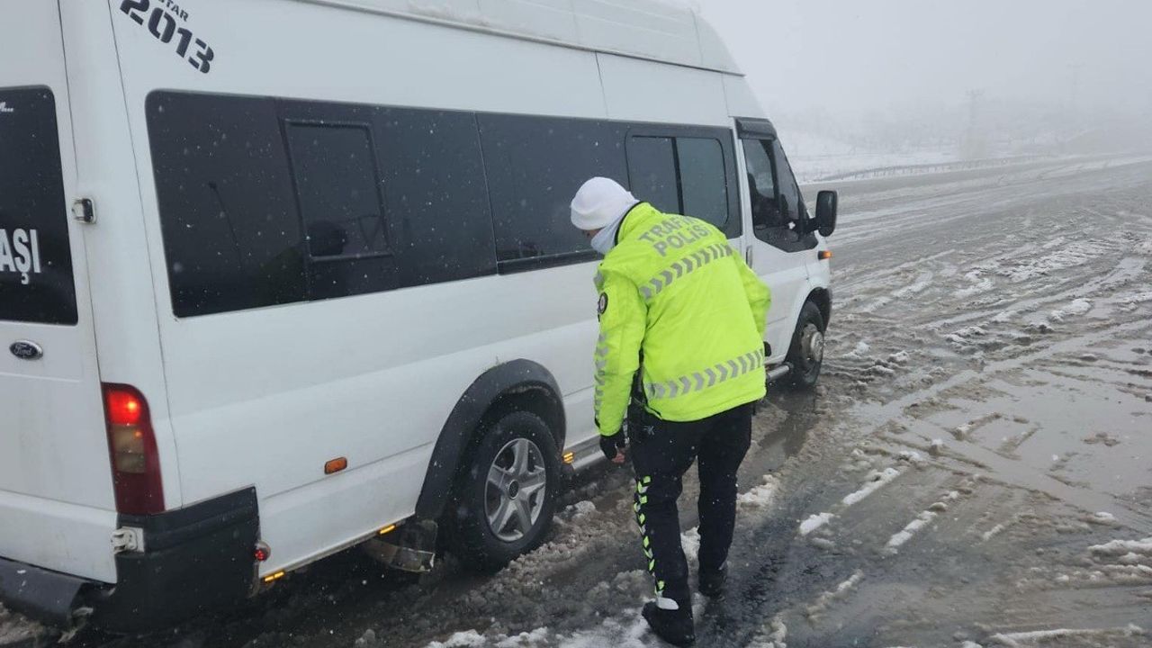 Birkaç gündür Adıyaman’ın Besni ilçesinde etkili olan kar yağışından dolayı kar kalınlığı 20 santimi buldu. Kar yağışı sonrası kazaların yaşanmaması ve araçların yollarda mahsur kalmaması için İlçe Emniyet Müdürlüğüne bağlı trafik polisleri harekete geçti. Polis ekipleri, ilçe merkezinde Besni- Adıyaman, Besni- Gaziantep ve Besni Gölbaşı Karayollarında denetimler yaptı. Yapılan denetimlerde ağır vasıtalı araçlar ile ticari araçların kış lastiği kontrolleri yapıldı. Kış lastiği kullanmayan araçların ise geçişlerine izin verilmedi. Denetimlerin sıklıkla devam edeceği, kazaları yaşanmaması adına ekiplerin güzergahta önlemler alacakları belirtildi.