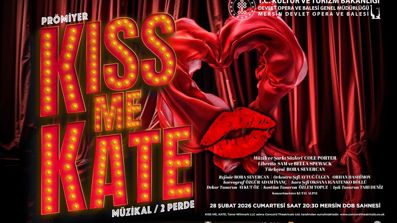 Mersin Devlet Opera ve Balesi, müzikal tiyatronun unutulmaz yapıtlarından “Kiss Me Kate”i sanatseverlerle buluşturuyor. İki perdelik bu görkemli prodüksiyon, Opera Sahnesi’nde Broadway ışıltısını Mersin’e taşıyacak. 28 Şubat Cumartesi, saat 20.30’da Opera Sahnesi’nde Prömiyeri gerçekleşecek eserin diğer gösterimleri ise 3 Mart Salı ve 5 Mart Perşembe günü.