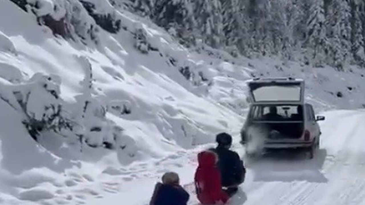 O anları araç içerisinden kayıda alan bir vatandaş ise, "İlc¸emizin sevilen esnafından Mehmet Ali kardes¸imiz arabasının arkasına bagˆladıgˆı bir kızakla c¸ocuklarını c¸ekiyor. Gerc¸ekten c¸ok gu¨zel bir go¨ru¨ntu¨, yıllardır savundugˆumuz bir s¸ey var, ilc¸emiz kayak merkezi olabilecek potansiyele sahip bir yer. Fakat bu durum hiçbir zaman degˆerlendirilmedi. Kayak merkezi denildiğinde de her zaman durum bu¨yu¨k du¨s¸u¨nülüyor, Uludagˆ ile kıyaslanıyor. Yapılan şu basit bir düzenek bile çocukları mutlu edebiliyor. Bizim aslında anlatmak istedigˆimiz durum budur" ifadelerine yer verdi.