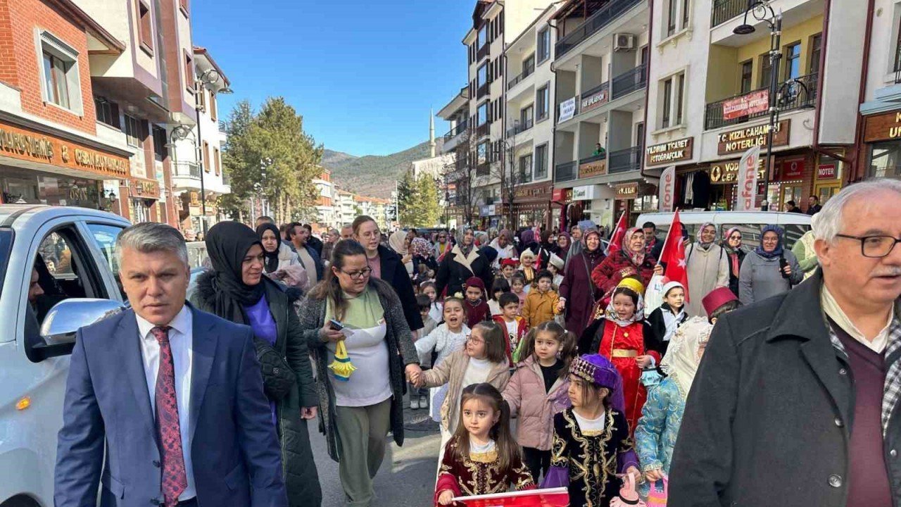 Ankara’nın Kızılcahamam ilçesinde 4-6 yaş arası öğrenciler, "Hoş geldin Ramazan" temalı yürüyüş gerçekleştirdi.