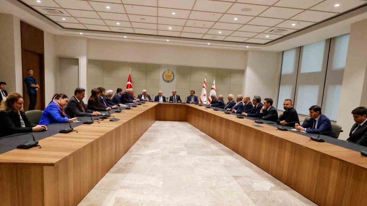 Kuzey Kıbrıs Türk Cumhuriyeti Cumhurbaşkanı Ersin Tatar, Türk Devletleri Teşkilatı (TDT) Aksakallar Konseyi Başkanı Binali Yıldırım ve beraberindeki heyeti ile yarın açılışı yapılacak Cumhurbaşkanlığı Külliyesi’nde bir araya geldi.