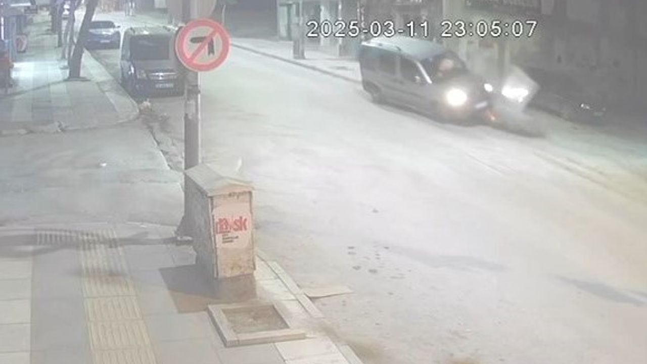 Elazığ’da sürücüsünün kontrolünden çıkan hafif ticari araç, kaldırımdaki saha dağıtım kutusuna çarptı. O anlar güvenlik kamerasına yansıdı.