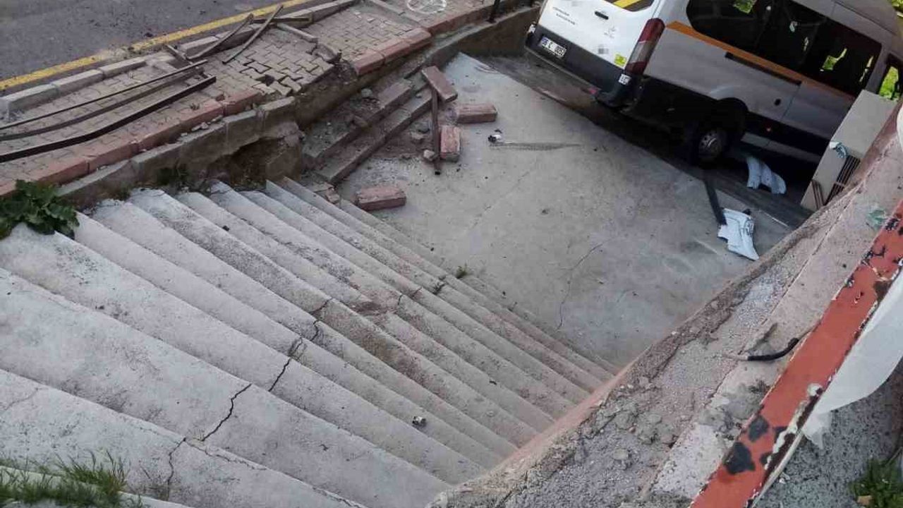 Ankara’da kontrolden çıkan servis aracı yol kenarındaki apartmanın merdivenlerine devrildi. Kazada can kaybı veya yaralanma yaşanmadı.