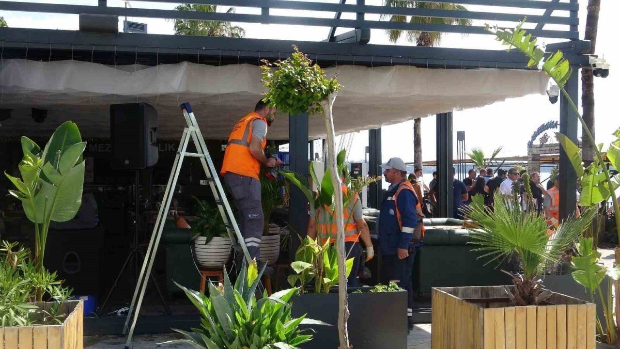 Antalya Büyükşehir Belediyesi, Konyaaltı Sahili’nde kıyı sınırlarını aşarak halkın plaj kullanımını kısıtlayan işletmelere müdahale etti. Kıyı Kanunu’na aykırı olarak dışa taşan bölümler kaldırılırken, işletmelere aykırılıkları gidermeleri için 5 Mayıs akşamına kadar süre tanındı.