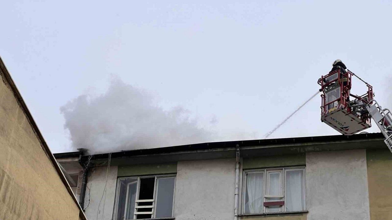 Konya’da 5 katlı binanın çatısında çıkan yangın bitişiğindeki diğer çatılara sıçramadan söndürüldü.