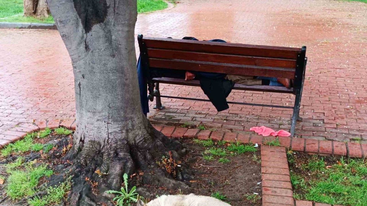 İlkadım ilçesindeki Anıt Park’ta yaşanan olayda, bir bankta uyuyakalan adamın yanına uzanan sokak köpeği, adeta nöbet tuttu. Parktan geçen vatandaşların dikkatini çeken köpek, uyuyan adamı korurcasına kimseyi yaklaştırmadı. Sakin anlarda ise adamın hemen yanında uyuyarak beklemeye devam etti. Nemli zemine rağmen adamın başucunda bekleyen sadık dost, adamın uyanıp parktan ayrılmasıyla birlikte sessizce oradan uzaklaştı.