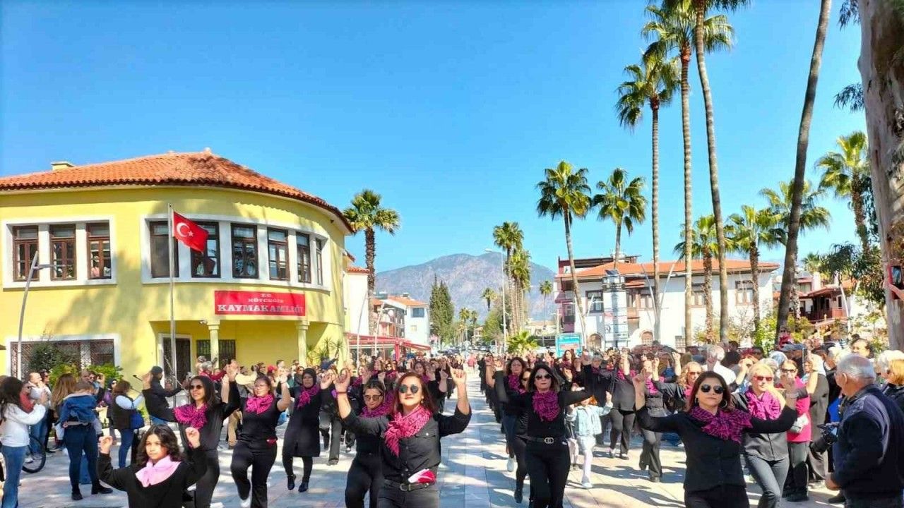 Muğla’nın Köyceğiz ilçesinde 8 Mart Dünya Kadınlar Günü dolayısıyla bir araya gelen 80 kadın harmandalı gösterisi gerçekleştirdi.