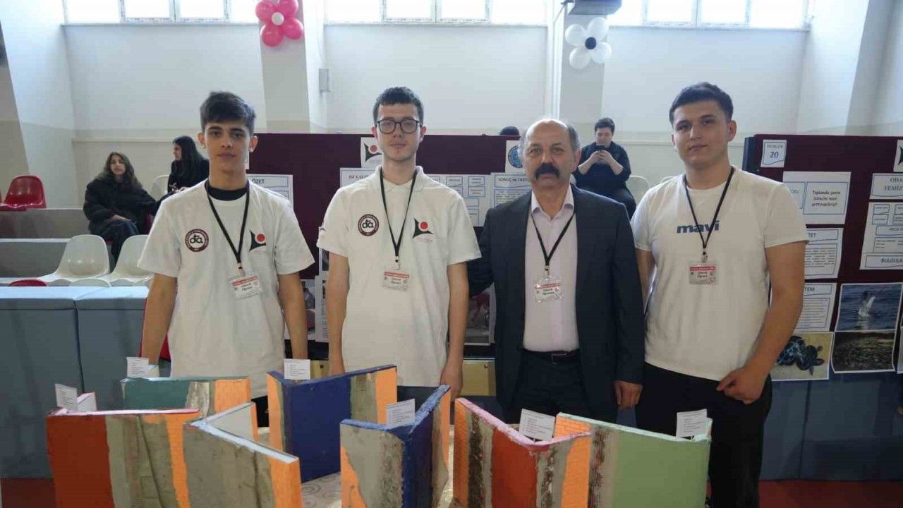 Lise öğrencileri Ali Eren Beytekin, Mustafa Saraçoğlu, Yiğit Can Güneş ve Mustafa Emir Demirci, danışman öğretmenleri Zekai Işıkdemir rehberliğinde yürüttükleri projede; ekonomik değerini yitirmiş koyun yünü, keçi kılı ve çam ağacı yaprağını çimento esaslı ya da su bazlı bağlayıcılarla karıştırarak levha formunda yalıtım malzemesi haline getirdi.