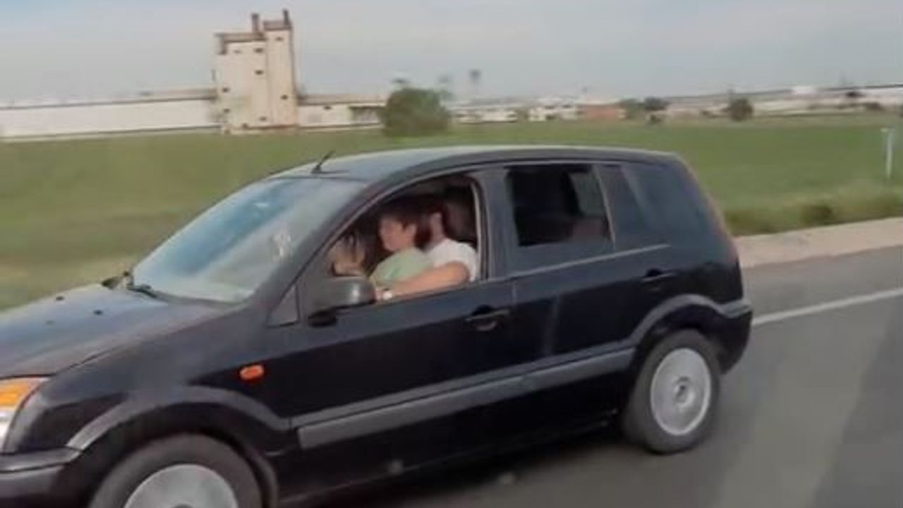 Tekirdağ’ın Ergene ilçesinde kucağında çocukla araba kullanan bir sürücü, seyir halindeki bir araçtan çekilen cep telefonu kamerasına kaydedildi.